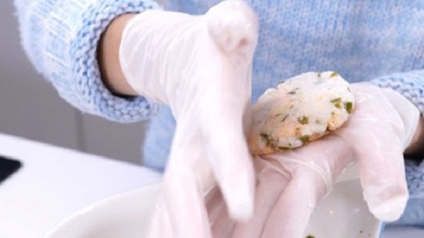 - Bước 3: Cho cơm vào máy xay xay qua rồi đổ vào bát tô, thêm cá hồi, rong biển, phô mai và muối vào trộn đều. Viên cơm thành viên tròn nhỏ rồi ấn dẹt.