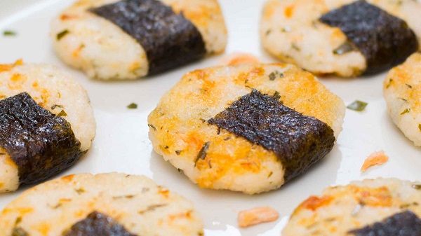 - Bước 4: Dùng một miếng rong biển nướng bọc bên ngoài viên cơm.