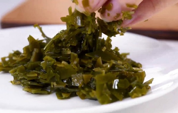 - Bước 1: Rong biển rửa sạch ngâm mềm rồi thái nhỏ.