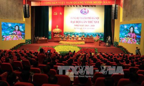 Sáng 3/11, Đại hội Đại biểu Đảng bộ thành phố Hà Nội lần thứ XVI, nhiệm kỳ 2015-2020 họp phiên bế mạc và ra mắt Ban Chấp hành Đảng bộ thành phố khóa XVI, Ban Thường vụ Thành ủy và đoàn Đại biểu Đảng bộ thành phố dự Đại hội toàn quốc lần thứ XII của Đảng.