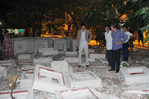 Được biết đường TTH 21 đang được nâng cấp chừng 1 tháng nay. Đơn vị thi công đã tận dụng bãi đất trống ven đường để đúc các nắp cống bê tông, phục vụ cho việc thi công. Tuy nhiên các nắp cống dựng lên, rất dễ ngã...