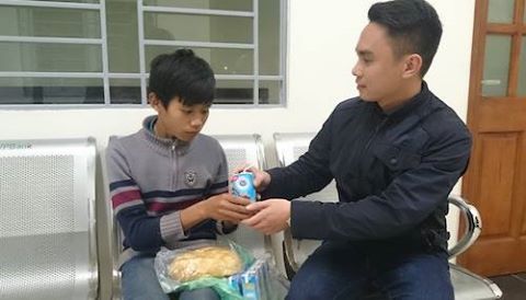 Sau khi sơ cứu, cháu bé tỉnh lại. Biết cháu bé đã đi lạc đường 2 ngày, không được ăn, rơi vào tình trạng đói rét kiệt sức, thiếu uý Vinh đã vội vã mua bánh, sữa cho cháu ăn rồi đưa cháu bé về CA phường Ngọc Lâm, quận Long Biên.