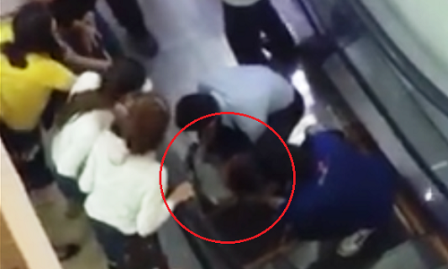 Đám đông cố gắng giải cứu bé trai bị thang cuốn siêu thị kéo vào khe. (Ảnh: VnExpress) |