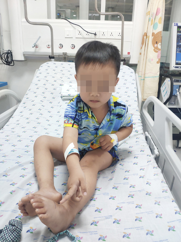 Bé V. bị rắn lục cắn vào chân trái. (Ảnh: BV) |