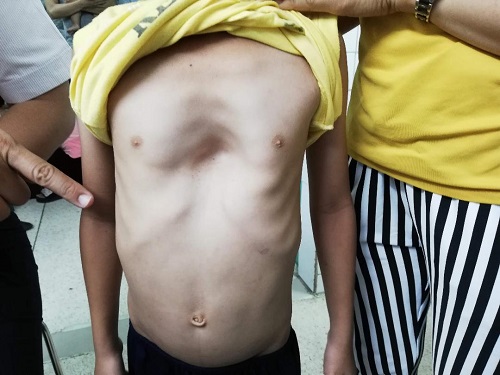 Ngực của bệnh nhi lúc nhập viện. Ảnh: Vnexpress |
