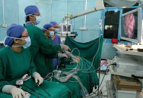 Các bác sĩ tiến hành phẫu thuật kép cho bệnh nhi. Ảnh: Vnexpress |
