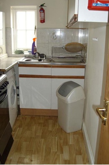 Căn bếp nhỏ có bồn rửa, bếp điện, máy giặt. Ảnh: Mirror |