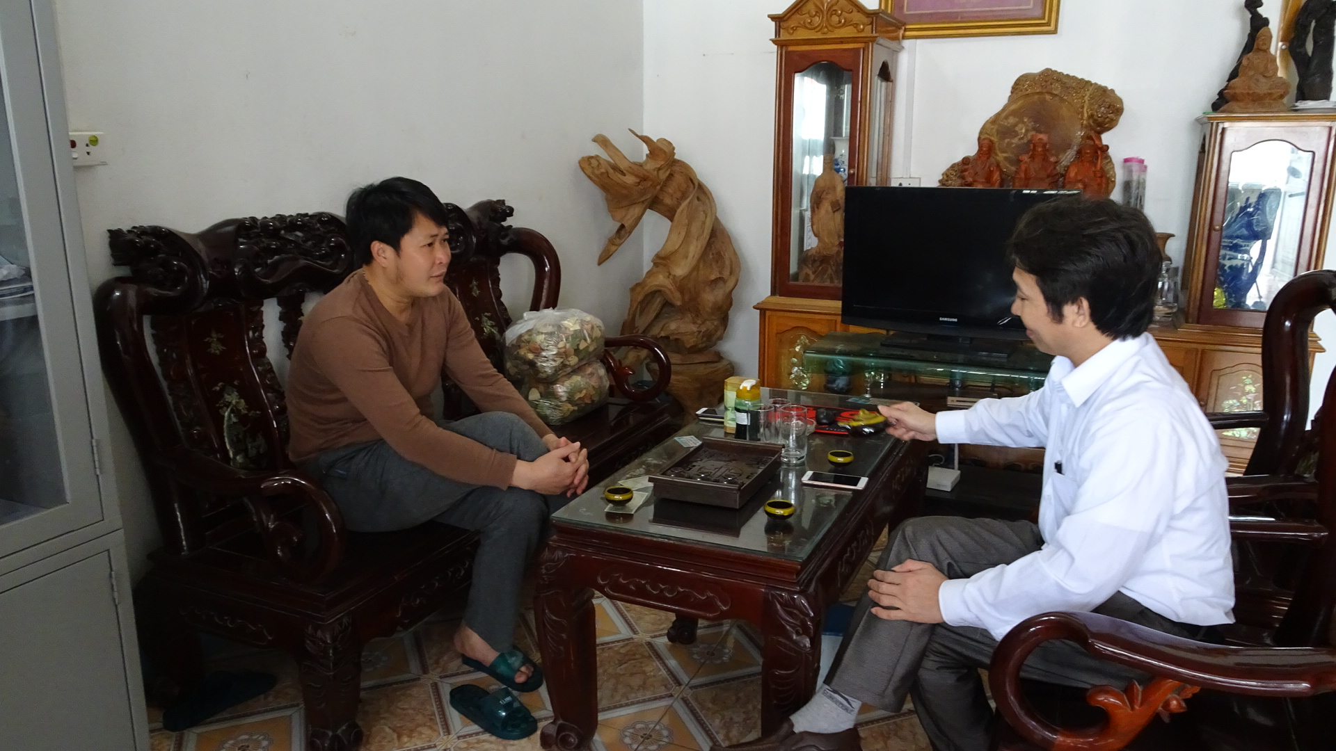 Anh Việt đến nhà lương y Đoàn Duy Khánh cảm ơn sau khi chữa khỏi bệnh đại tràng. Ảnh: Minh Tân |