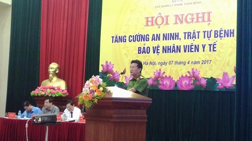 | Sáng 7/4, tại Hà Nội, Bộ Y tế, Cục quản lý Khám, chữa bệnh đã tổ chức Hội nghị Thực trạng và giải pháp bảo đảm an ninh trật tự bệnh viện, bảo vệ nhân viên y tế. GS.TS Nguyễn Viết Tiến, Thứ trưởng Bộ Y tế đã tham dự và chủ trì hội nghị. Hơn 300 đại biểu từ các bệnh viện tuyến trung ương, tỉnh/thành; đại diện lãnh đạo các Cục, Tổng Cục của Bộ Công an, Công an các tỉnh thành phố; Tổng Liên đoàn lao động Việt Nam và các cơ quan báo chí đã tham dự và thảo luận tại Hội nghị. |
