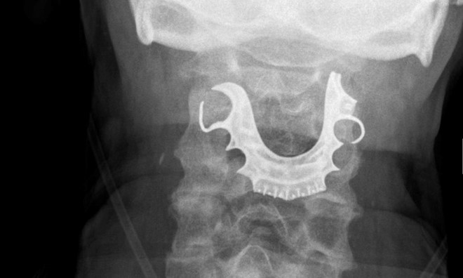 Bệnh nhân bị mắc răng giả trong cổ họng trong khi gây mê làm phẫu thuật. Ảnh: BMJ |