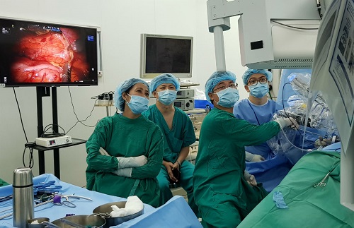"Thời gian phẫu thuật 2 ca khoảng 4 giờ với tổng số lượng máu bệnh nhân mất trong mỗi ca phẫu thuật trung bình 50ml và không phải truyền máu trong quá trình phẫu thuật, thời gian bệnh nhân nằm viện 2 ngày, ít hơn 5 ngày so với trước đây", bác sĩ Sâm cho hay.