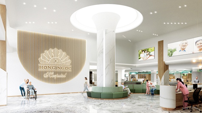 Phối cảnh sảnh chờ tầng 1 Bệnh viện Hồng Ngọc Phúc Trường Minh
