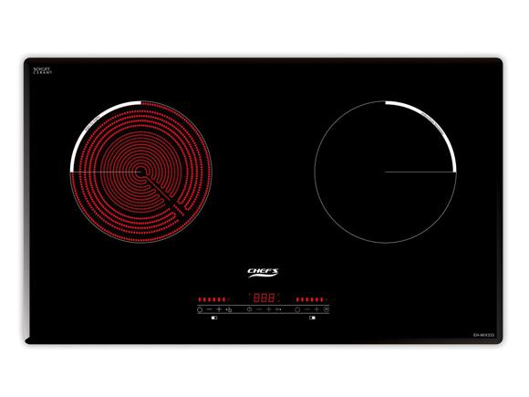 Bếp điện từ Chef's EH-MIX333 được thiết kế sang trọng với mặt kính Schott Ceran vát cạnh. Người tiêu dùng cũng hoàn toàn yên tâm khi Chef's là đối tác chính thức của tập đoàn Schott Ceran, một trong những tập đoàn hàng đầu về vật liệu tại Đức. Loại mặt kính cao cấp nhất cho các dòng bếp từ chống xước, chịu lực tốt, chịu nhiệt lên đến 1000 độ C, chịu sốc nhiệt lên đến 800 độ C. Với 2 vùng nấu, mâm từ đường kính 22cm, hỗ trợ tính năng nấu nhanh Booster – max 3000W, mâm nhiệt EGO Hi-light 2 vòng nhiệt (14/22cm).Không chỉ mang tính linh hoạt, tính hữu dụng với nhiệt lớn giúp món xào,rán ngon hơn, lò nhiệt của bếp giúp tiết kiệm hơn khi sử dụng được các bộ nồi đã dùng với bếp gas.