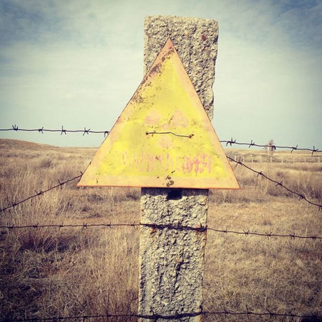 Bảng cảnh báo phóng xạ cấm người dân đến gần các khu mỏ uranium. Ảnh: AP |