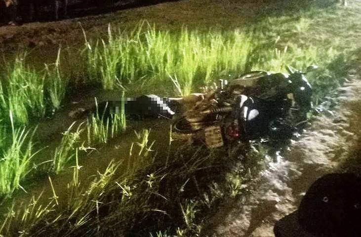 Người dân đi đường phát hiện người đàn ông tử vong trong tư thế úp mặt xuống vũng nước dưới ruộng, bên cạnh xe máy.