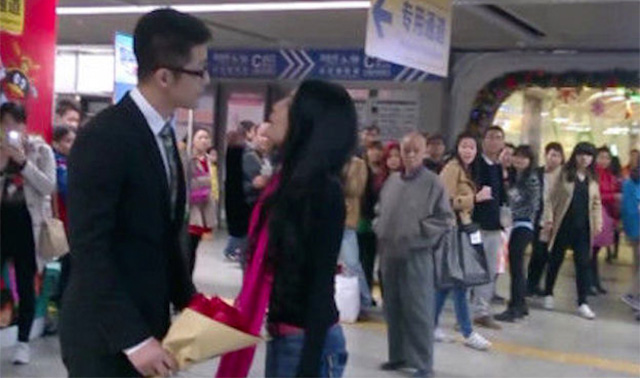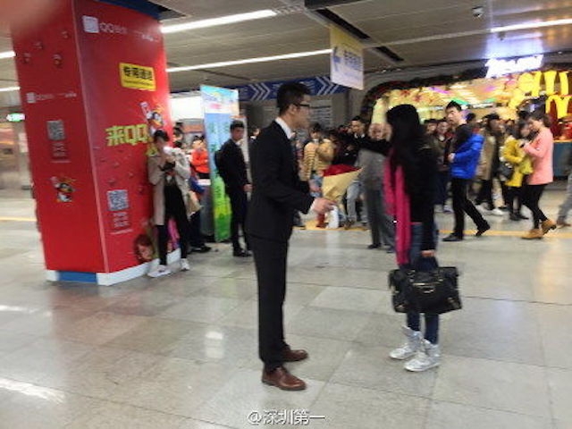 Những bức ảnh chụp một cô gái bị bạn trai chia tay ngay tại bến tàu điện ngầm Thâm Quyến, Trung Quốc đang gây xôn xao trên mạng xã hội Trung Quốc.