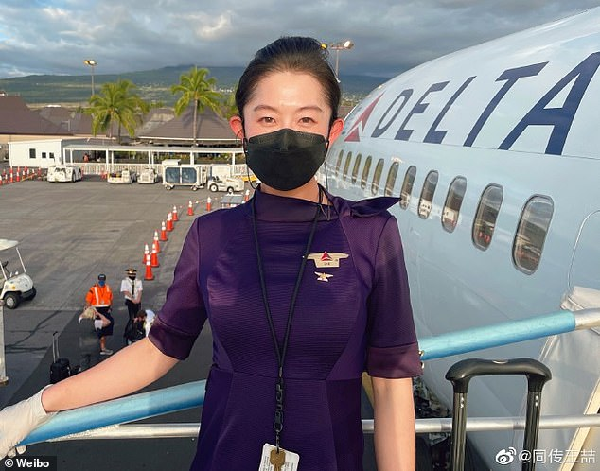 Ngoài công việc phiên dịch, cô Wang còn là một tiếp viên hàng không. Ảnh: Weibo |