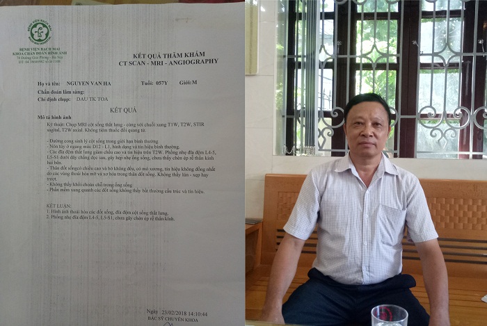 Sau khi thực hiện chụp MRI, bác sĩ chẩn đoán anh Hà bị THOÁI HÓA CỘT SỐNG L4-L5, S1, phồng nhẹ đĩa đệm. Rồi anh điều trị nội trú tại Khoa Y học Cổ truyền ở bệnh viện này 20 ngày, chủ yếu là châm cứu, xoa bóp bấm huyệt và uống thuốc Đông y do viện cấp. Dù việc điều trị liên tục và tích cực, nhưng anh nhận thấy bệnh tình không giảm bao nhiêu, các cơn đau vẫn hành hạ anh suốt ngày đêm.