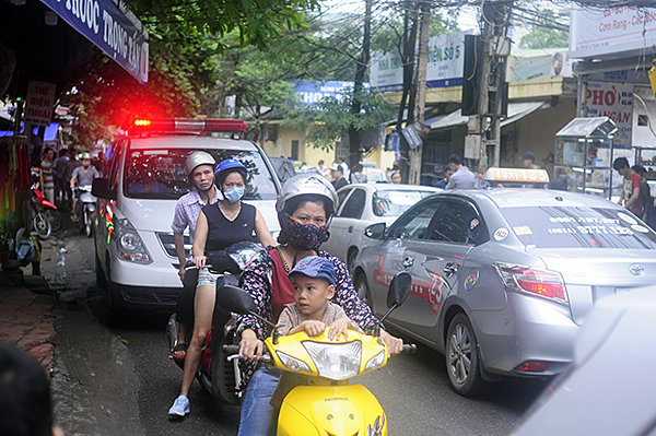 Giao thông ùn tắc do rất đông người dân tụ tập quanh khu vực xảy ra cháy. Ảnh: Xuân Đoàn. |