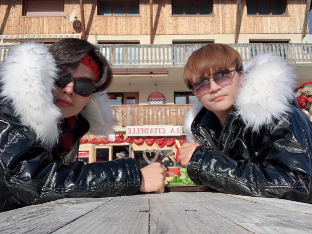 MC Đại Nghĩa cùng đàn em Tấn Phát mặc đồ đôi. |