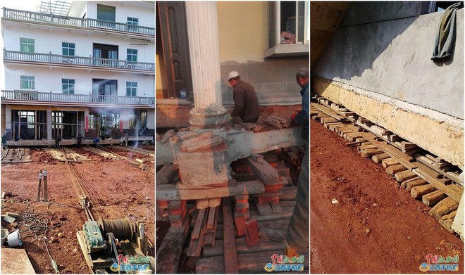 Ngôi nhà 3 tầng, nặng hơn 1.000 tấn sẽ cần di dời khoảng 40 mét trên mặt đất. Toàn bộ quá trình di dời mất hơn 1 tháng rưỡi và cần tới 1000 ván gỗ.
