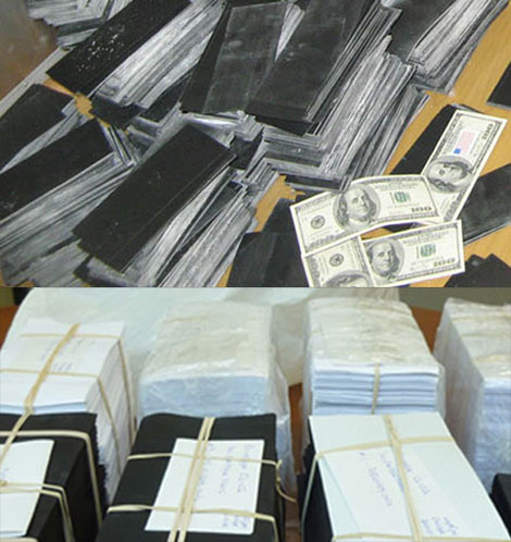 Để làm tin, chúng rút từ trong cọc giấy đen 2 tờ, đổ hóa chất ra khay và nhúng vào. Lắc qua lắc lại vài lượt, 2 tờ tiền có mệnh giá 100 và 50 USD hiện ra. Hai đối tượng cũng phịa rằng vì hoàn cảnh nên chúng không về Nam Phi được, giờ muốn nhờ mọi người mua giúp hóa chất để nhúng lấy lại hình dạng tiền ban đầu. Vì loại hóa chất này rất đắt, chúng phải rủ người tham gia “hùn vốn” 10.000 USD, hứa sẽ trả công hậu hĩnh.
