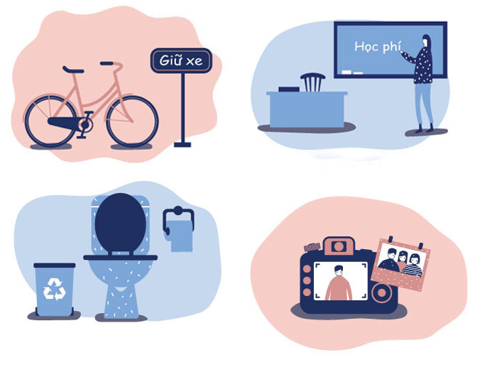 Các khoản thu khác như tiền lao công, tiền tạp phí, tiền gửi xe, tiền ủng hộ cơ sở vật chất, tiền học ngoại khóa, tiền trải nghiệm theo chuyên đề, tiền mua máy chiếu, tiền lắp đặt điều hòa, tiền hỗ trợ bàn ghế…
