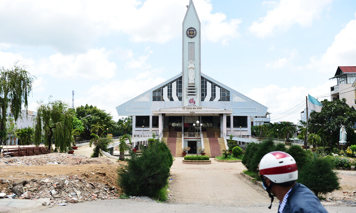 Tòa thánh nặng 1.500 tấn được “thần đèn” Nguyễn Văn Lý nâng lên cao hơn 2m so với mặt đất. |