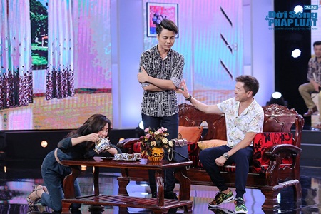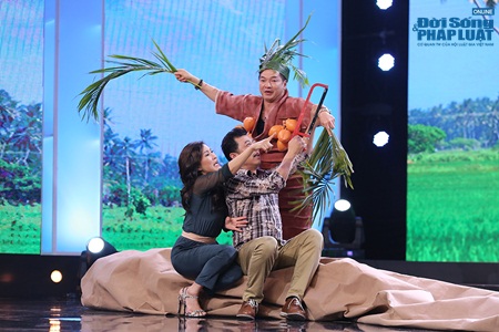Ngay khi Vân Sơn hôn Hồng Đào, cây dừa Quang Minh bức xúc thoát vai 2 giây la: “Bộ mày làm thiệt hả Sơn, mày vừa phải thôi nha”. Vân Sơn chê bạn già: “Minh làm dở lắm nè, để Sơn làm cho coi”. Hồng Đào bênh chồng, thách thức Vân Sơn: “Anh nói nghe ngon quá, anh làm đúng đạo cụ đúng không? Rồi cho anh làm”.