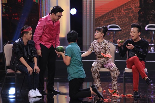 Giải thích cho việc làm này, “cô gái nhà giàu” Việt Hương nói: “Em biết tụi em rớt rồi nên đập dưa hấu ăn”.