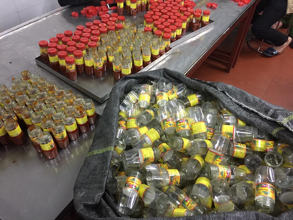 Lực lượng chức năng vừa thu giữ số lượng lớn sa tế giả với gần 3.000 lọ sa tế thành phẩm, số lượng lớn đã qua chế biến đang chờ đóng hộp, hàng nghìn lọ, vỏ nhãn hiệu, máy đóng gói...