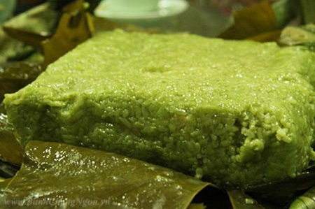 Bánh chưng cốm được làm từ cốm nên khi bóc ra vỏ ngoài của bánh hơi ướt hơn so với bánh chưng xanh truyền thống nhưng bù lại rất dẻo, mềm.