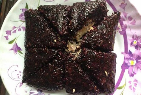 Bánh chưng nếp cẩm có vỏ bánh có màu đen tím của hạt nếp cẩm. Vỏ bánh khi ăn rất mềm và dẻo, ăn vào có cảm giác thanh mát.
