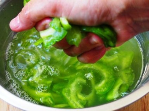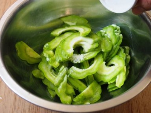 Cho mướp đắng vào ngâm nước muối khoảng từ 5-8 phút