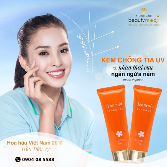 Kem chống tia UV Tennenbi UV Milk cũng được Hoa hậu Việt Nam 2018 Trần Tiểu Vy tin dùng để bảo vệ và chăm sóc tốt nhất cho làn da. |