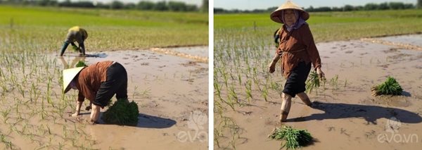 Ngày nắng, cụ vẫn đi cấy thoăn thoắt. |
