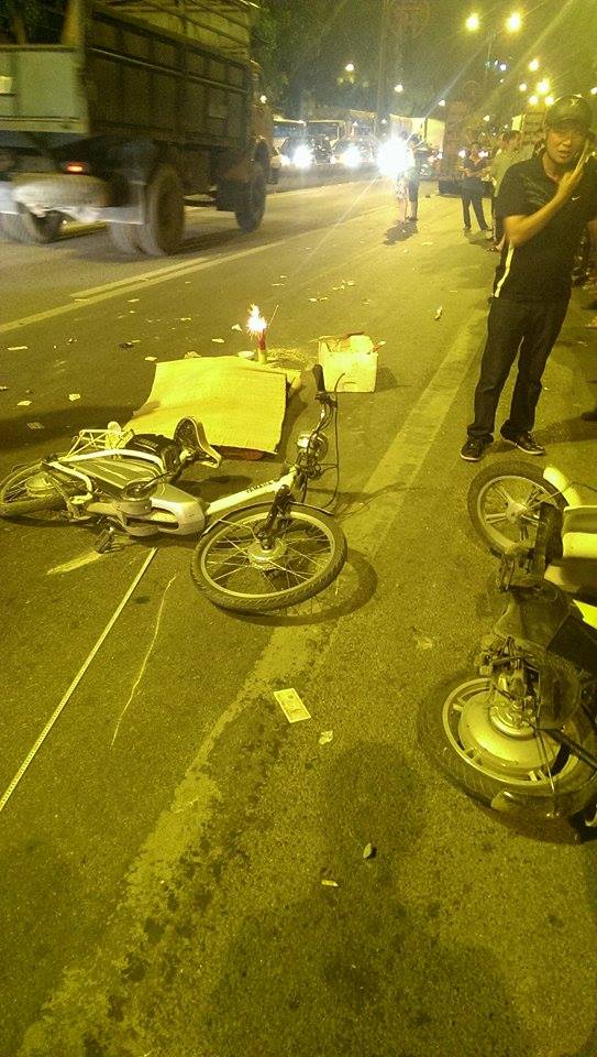 Một người chứng kiến tường tận sự việc cho biết: “Vào khoảng thời gian trên, hai chiếc xe đạp điện lưu thông trên tuyến đường Phạm Văn Đồng hướng bến xe Mỹ Đình đi Cổ Nhuế, một chiếc xe kèm hai còn một chiếc đi một mình, cả ba đều là học sinh nữ có tuổi đời rất trẻ”. “Khi di chuyển tới khu vực đối diện số nhà 122, tại đây xuất hiện nhiều xe gom rác đậu chìa ra lòng đường. Có một chiếc xe gom rác đã đậu hẳn ra ngoài khiến chiếc xe đạp điện đi bên trong phải quặt tay lái tránh né. Sau khi quặt tay lái, chiếc xe bên trong đã mắc vào xe đạp điện bên ngoài khiến cả hai xe và 3 em học sinh ngã xuống lòng đường. Cùng lúc đó, một xe sơ mi rơ mooc mang biển kiểm soát (BKS) 29R.0748 lưu thông qua đây do không kịp tránh né nên đã cán qua học sinh ngã phía ngoài khiến em tử vong tại chỗ.” |