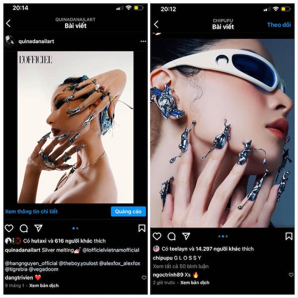 Trong bài viết trên Facebook, Quỳnh Anh cho biết: "Mới đây mình được bạn bè gửi cho hình ảnh bên ekip một nghệ sĩ Việt đã copy tác phẩm Nailart 'Silver Melting' của mình. Tác phẩm này nằm trong ấn phẩm tháng 1/2021 của tạp chí L’Officiel Vietnam Official. Là một người làm công việc sáng tạo, mình cảm thấy thật sự tổn thương khi thấy hình ảnh này".
