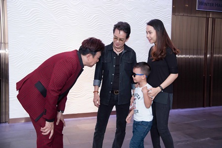 Về phần nhạc sĩ Đức Huy, anh đưa cả vợ kém 44 tuổi và con trai tới dự buổi ra mắt. Nam nhạc sĩ tiết lộ, ban đầu anh dự định đưa cả con gái tròn 2 tháng tuổi cùng đi nhưng cuối cùng đành để em bé ở nhà vì trời nắng nóng.