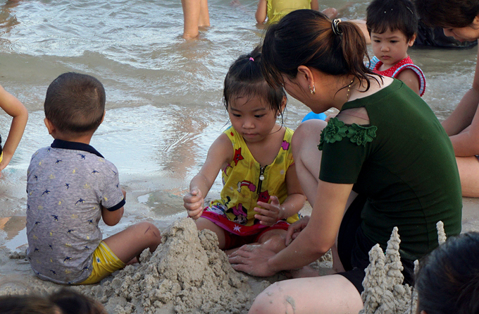 | Các gia đình cho con chơi trên bãi biển hoặc một số trò chơi có thu phí với giá vé từ 60 đến 80 nghìn đồng. Ảnh: Vnexpress |