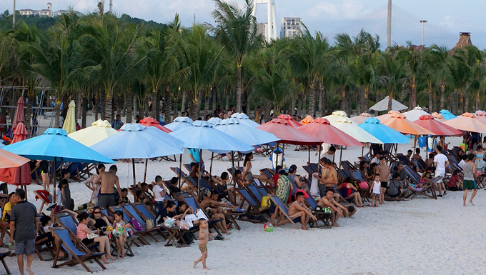 | | Khu vực lối vào bãi tắm là nơi tập trung đông khách du lịch nhất. Đây là bãi tắm nhân tạo có chiều dài khoảng 2km. Ảnh: Vietnamnet |