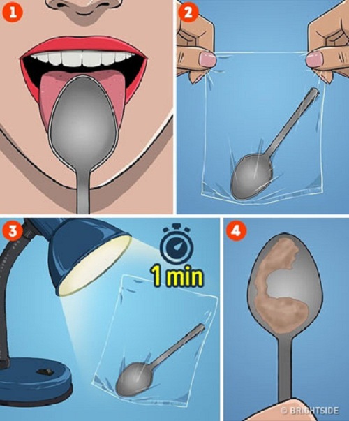 Theo đó, cách làm rất đơn giản, bạn dùng 1 chiếc thìa và đặt lên lưỡi, chà lên toàn bộ bề mặt lưỡi sao cho thìa ướt dính đầy nước bọt.