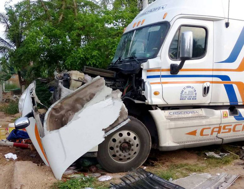Trong lúc rẽ vào một con đường đất, xe tải bất ngờ va chạm với xe container BS 51C - 762.82 do tài xế Lê Doãn Đô (30 tuổi, Sầm Sơn, Thanh Hóa) điều khiển, lưu thông cùng hướng.