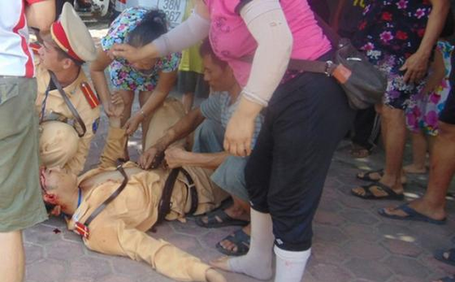 Thiếu úy công an bị côn đồ chém thương tích. Ảnh: Trí Thức Trẻ |
