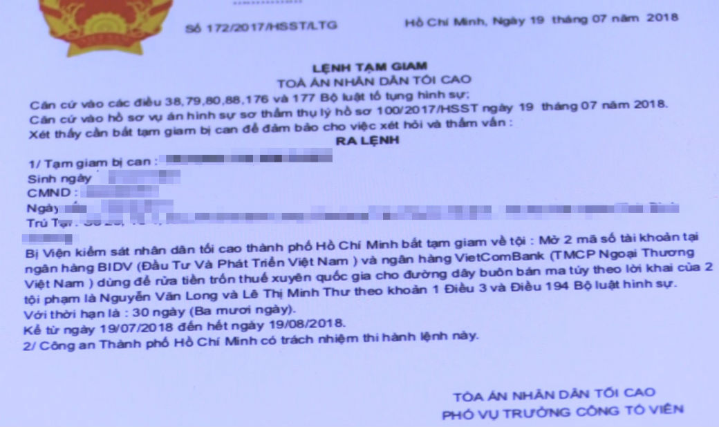 Để tăng sự tin tưởng nhằm khiến nạn nhân hoảng sợ, hoang mang, nhóm lừa đảo còn gửi cho nạn nhân một tờ…“lệnh tạm giam” ghi rõ họ tên, ngày tháng năm sinh, số CMND, địa chỉ…của nạn nhân.