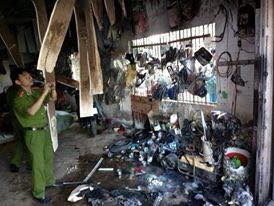 Trong lúc chạy ra ngoài, mẹ của anh Đức bị lửa tạt vào chân gây phỏng nặng. Tài sản thiệt hại là chiếc xe máy và một số vật dụng trong gia đình.