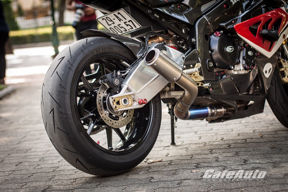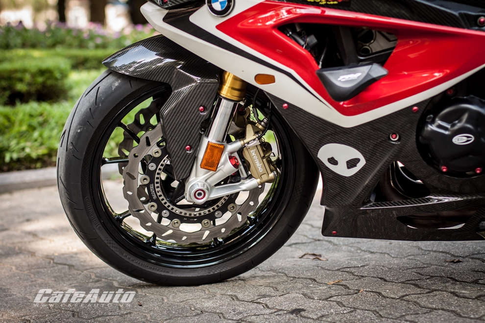 Chiếc BMW S1000RR 2014 được CafeAuto giới thiệu trong bài viết thuộc phiên bản 2014 và đã được chủ nhân độ lại với dàn áo carbon của Goldbet, cặp ống xả CR Racefit, ốp động cơ, gù chống lật và hàng loạt các chi tiết bắt mắt khác.