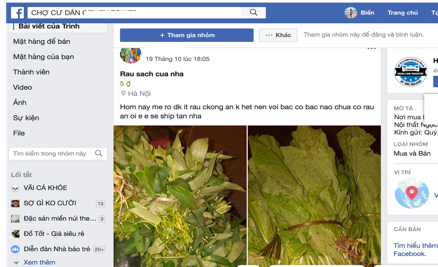 | Một chợ online trên mạng giới thiệu và bán rau sạch của nhà trồng được. |