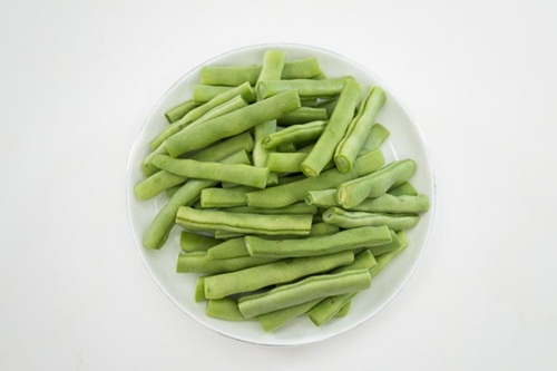 Đậu cô ve tước xơ, rửa sạch, cắt thành nhiều khúc bằng nhau.