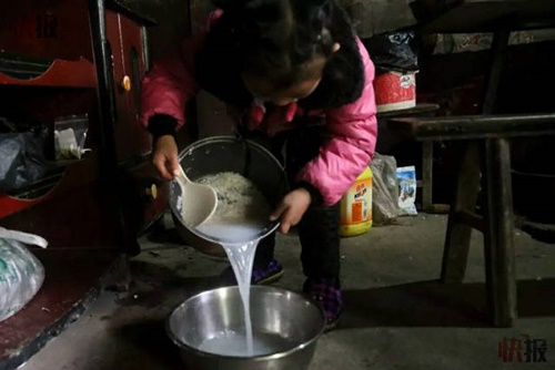 Sau khi người cha bị đi tù, mẹ bé Wang Anna đã tái hôn với người khác, bỏ lại bé một mình chăm sóc bà và cụ già yếu gần 100 tuổi.